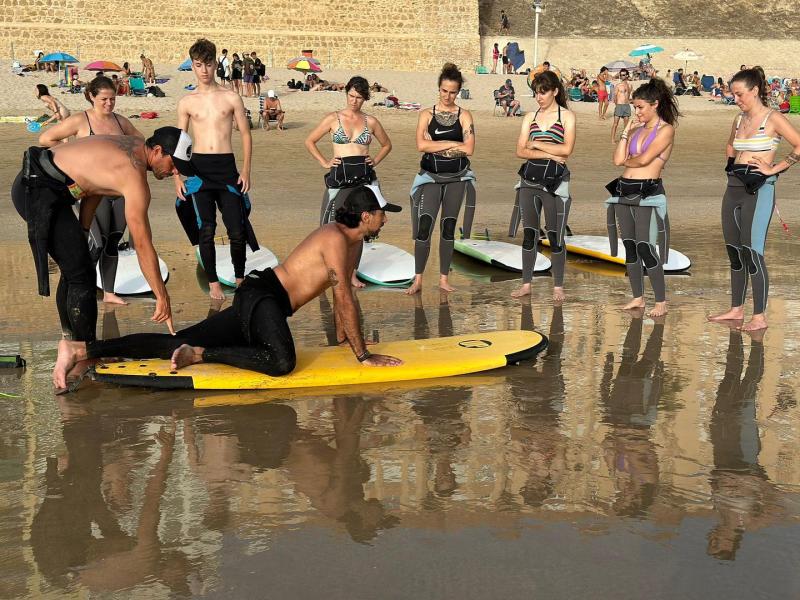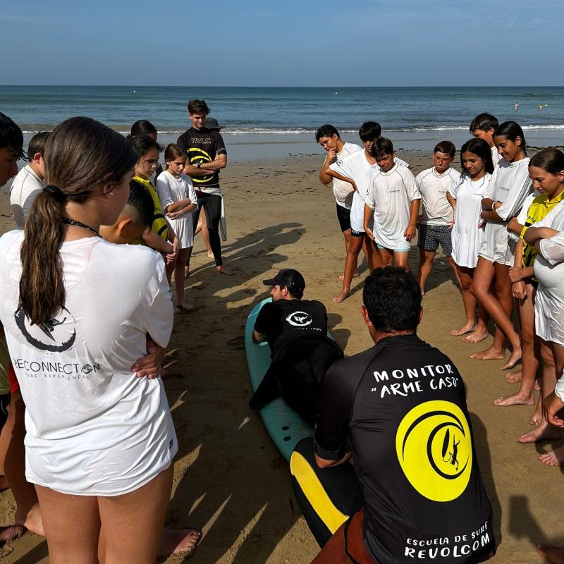Revolcom es una escuela de surf de Cádiz que ofrece clases personalizadas adaptadas a todos los niveles, desde principiantes hasta surfistas con experiencia. Trabajan exclusivamente bajo reserva, lo que les permite ofrecer un servicio más flexible y adaptado a las condiciones del mar. Su equipo de monitores cualificados acompaña a los alumnos en cada sesión para garantizar una experiencia segura, divertida y en pleno contacto con la naturaleza.