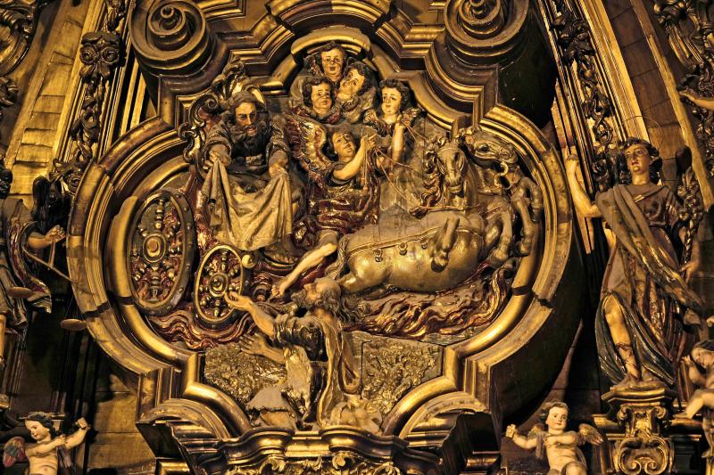 La costruzione del retablo maggiore iniziò nel 1766 e fu terminato nel 1785. È suddiviso in tre fasce da colonne corinzie decorate di rocalle. La fascia centrale ospita un baldacchino formato da due corpi: quello principale possiede l'immagine della Vergine del Carmen, opera di Jacinto Pimentel del 1638, mentre il secondo ha un Bambino Gesù di tradizione montañesina.