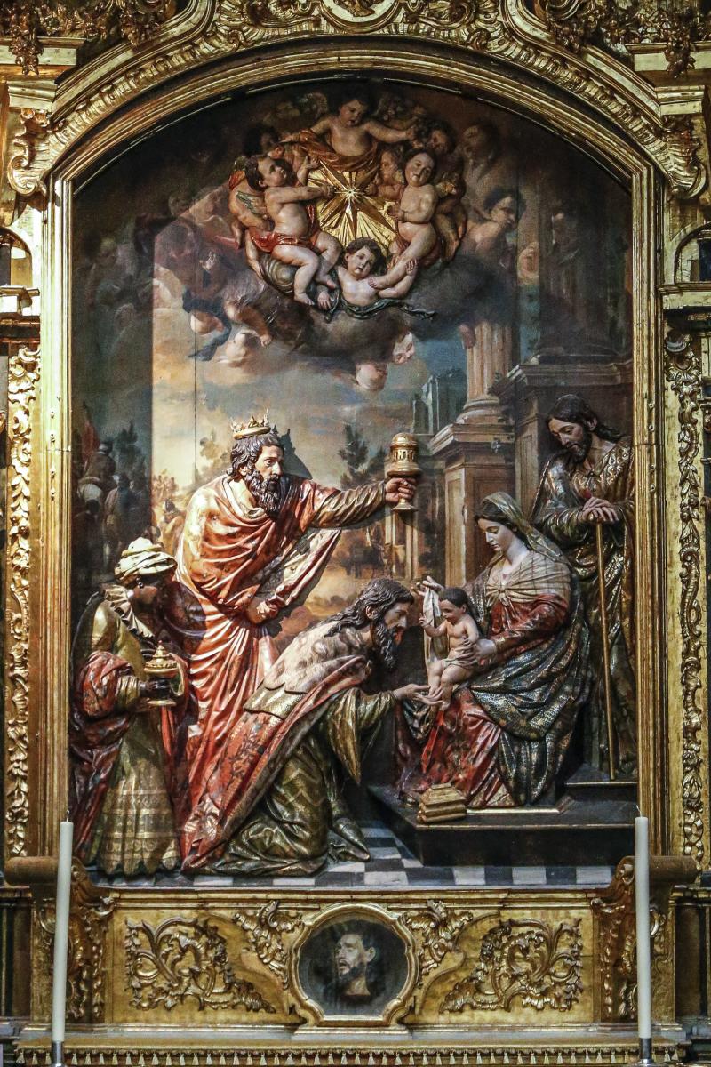 En el interior, el retablo mayor, obra rococó del siglo XVIII en madera dorada, alberga un lienzo de la Inmaculada Concepción realizado por el célebre pintor sevillano Bartolomé Esteban Murillo.