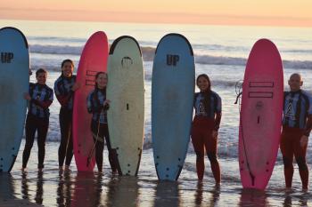 Aurea Surf School es una escuela dinámica y cercana que invita a sumergirse en el mundo del surf con clases individuales o grupales adaptadas a todos los niveles.